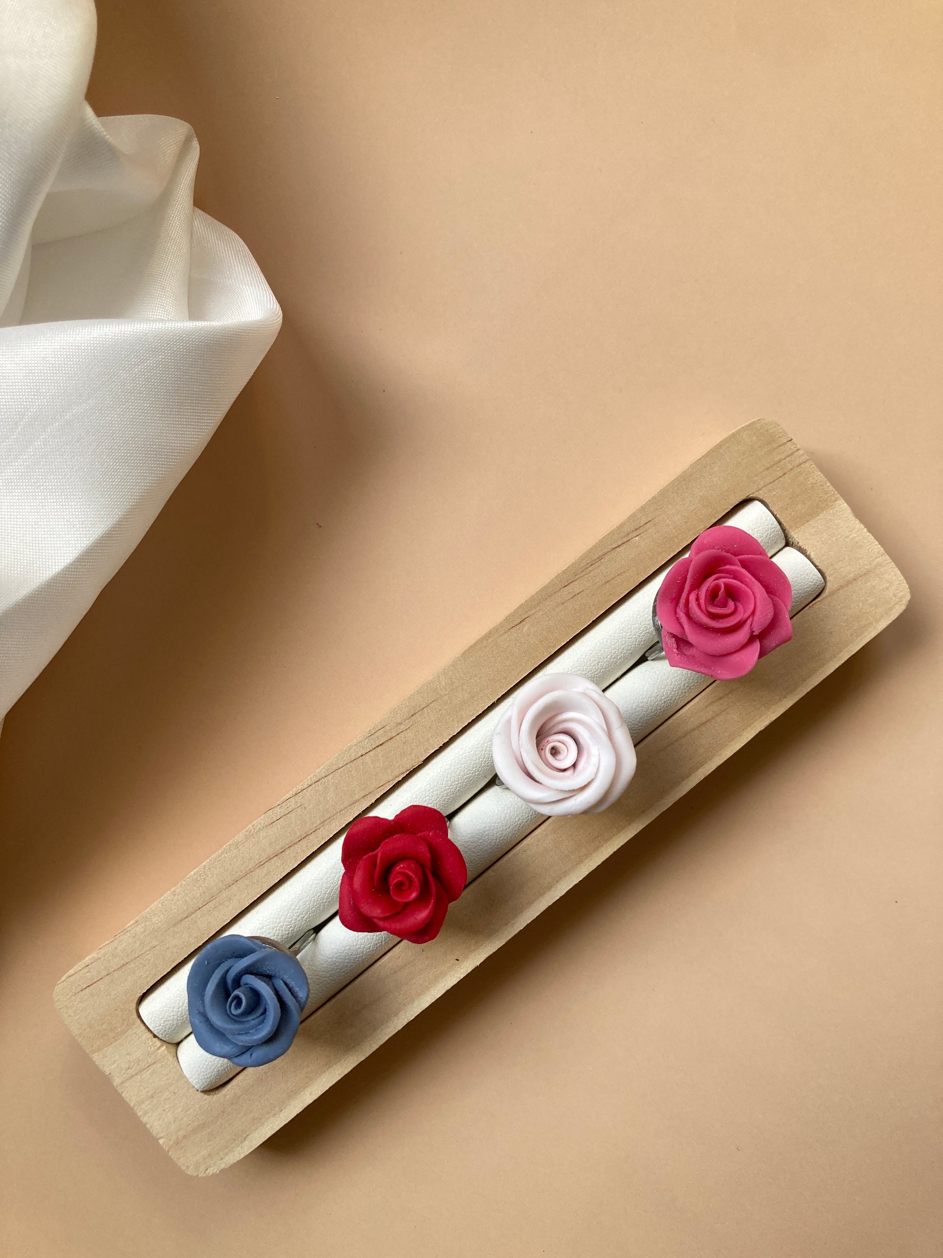 Preciosos anillos ajustables de acero inoxidable plateado en forma de rosa, que aportan un toque delicado y suave a tu outfit.