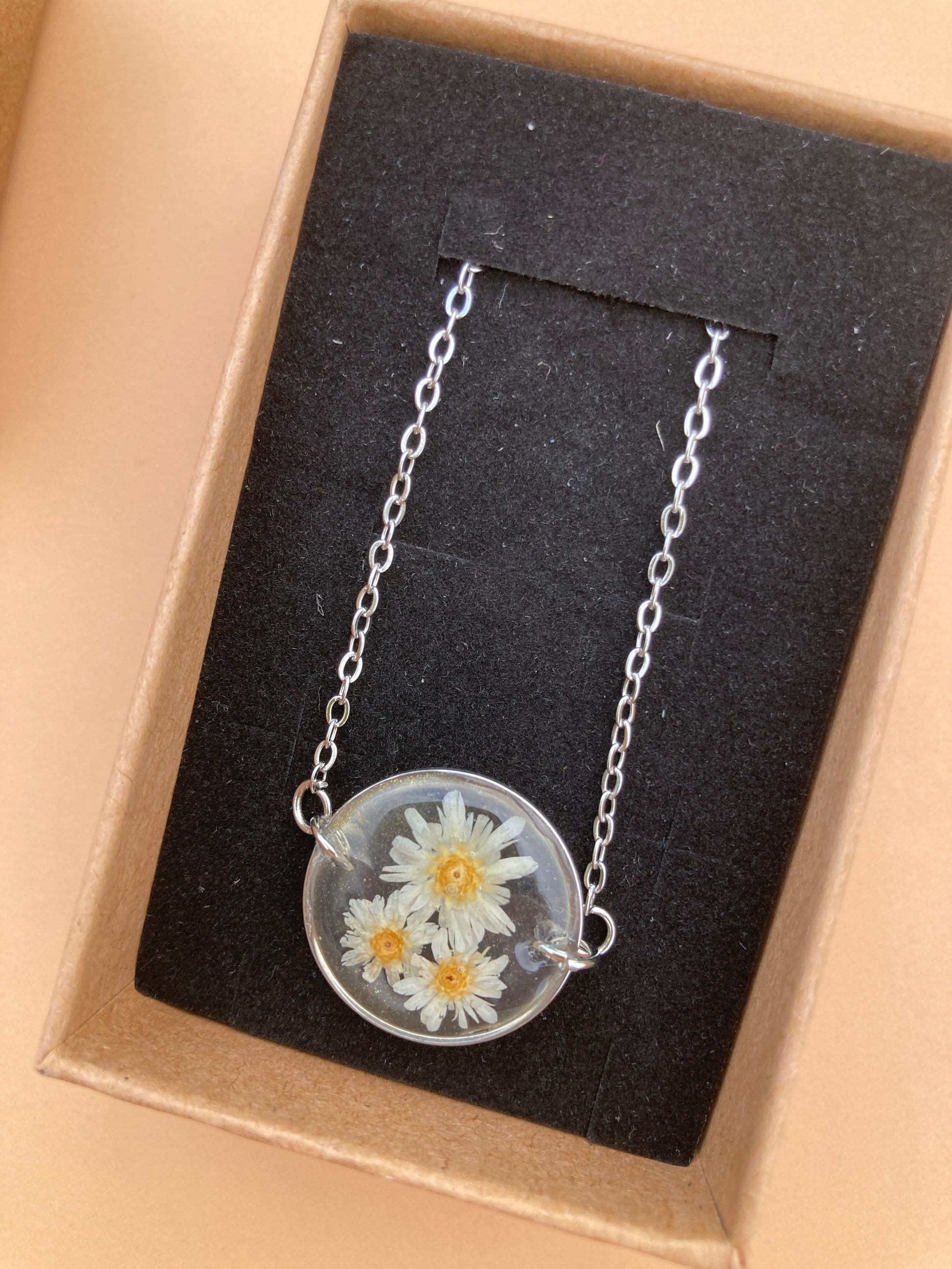 Cada pieza está elaborada con mimo, combinando la delicadeza de las flores con la transparencia de la resina. Perfecto para regalar(te) un detalle especial, lleno de finura y suavidad.