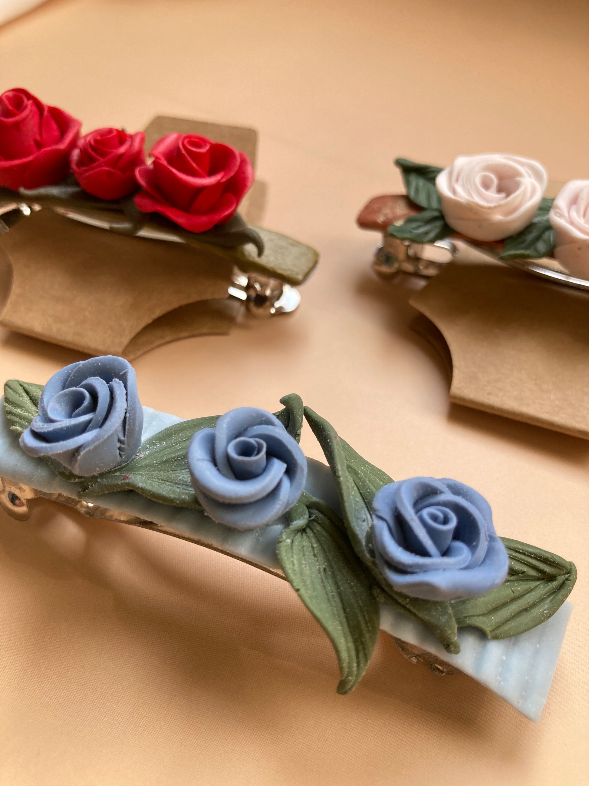 Pasadores de pelo de 8cm con rosas artesanales. Recógete media melena añadiendo este bonito accesorio que no dejará a nadie indiferente.