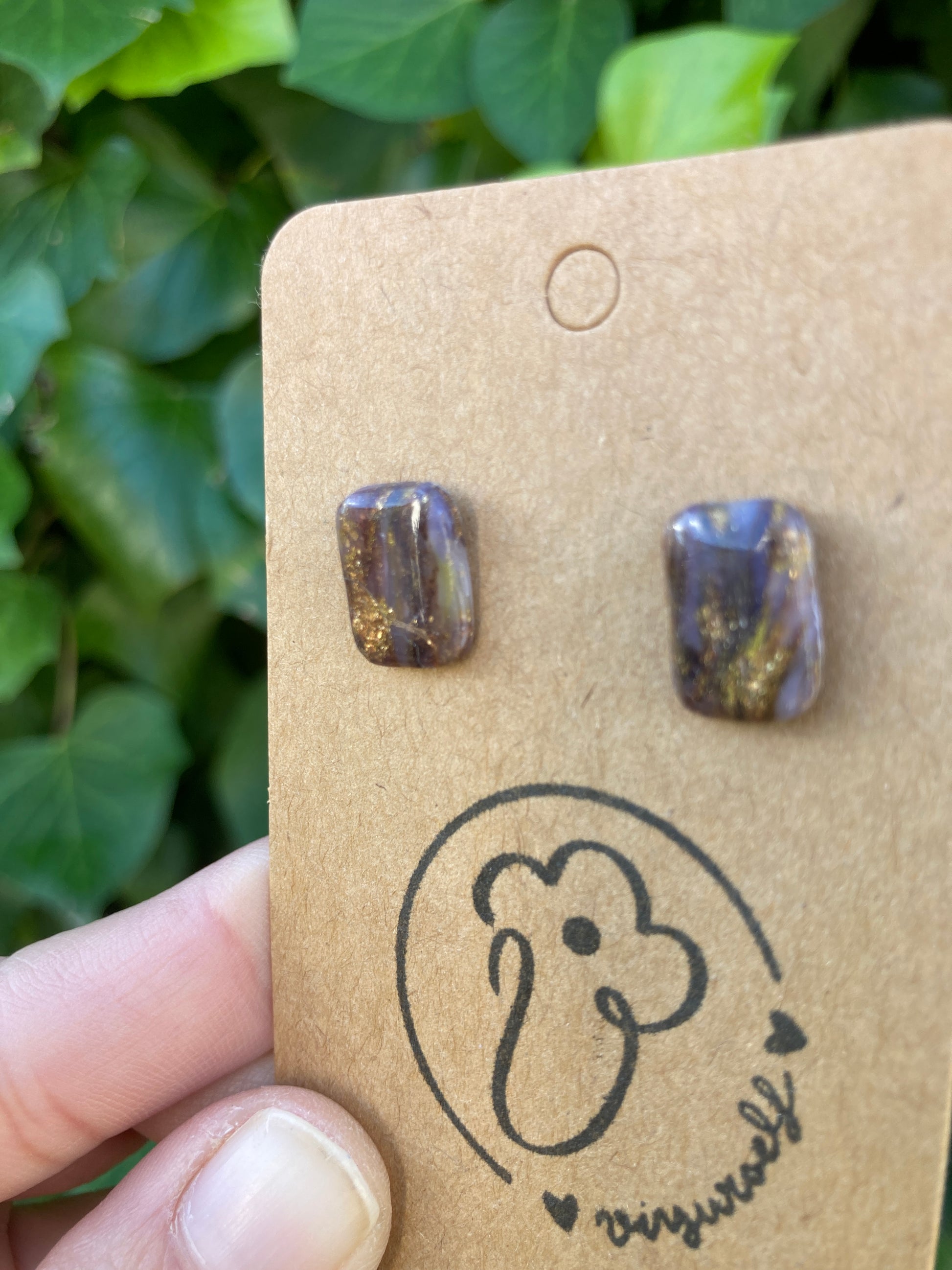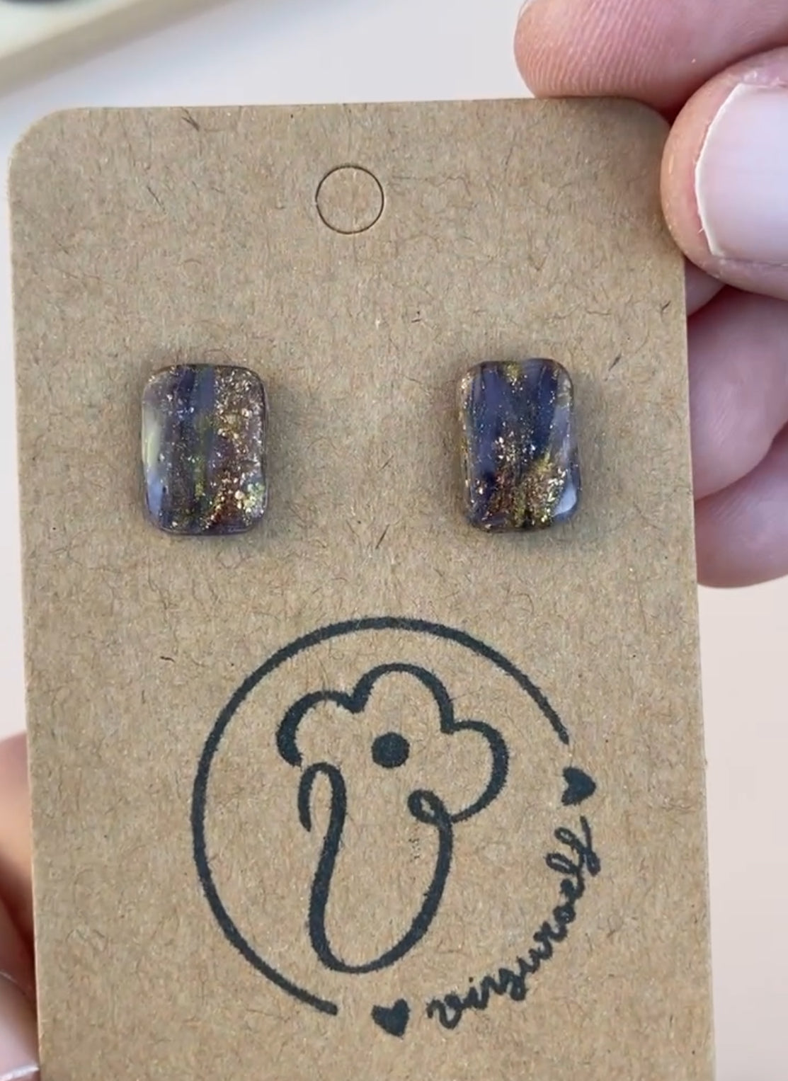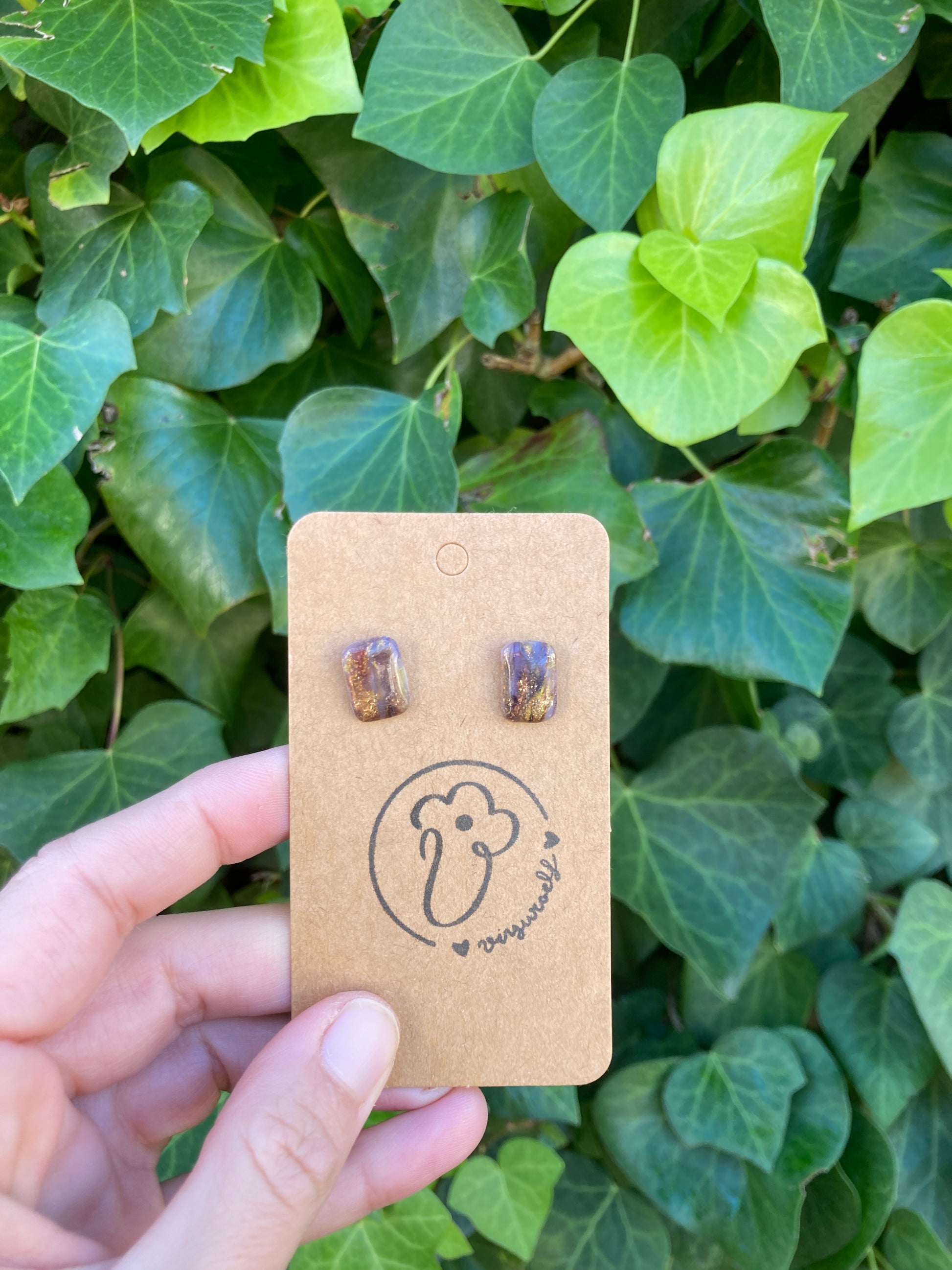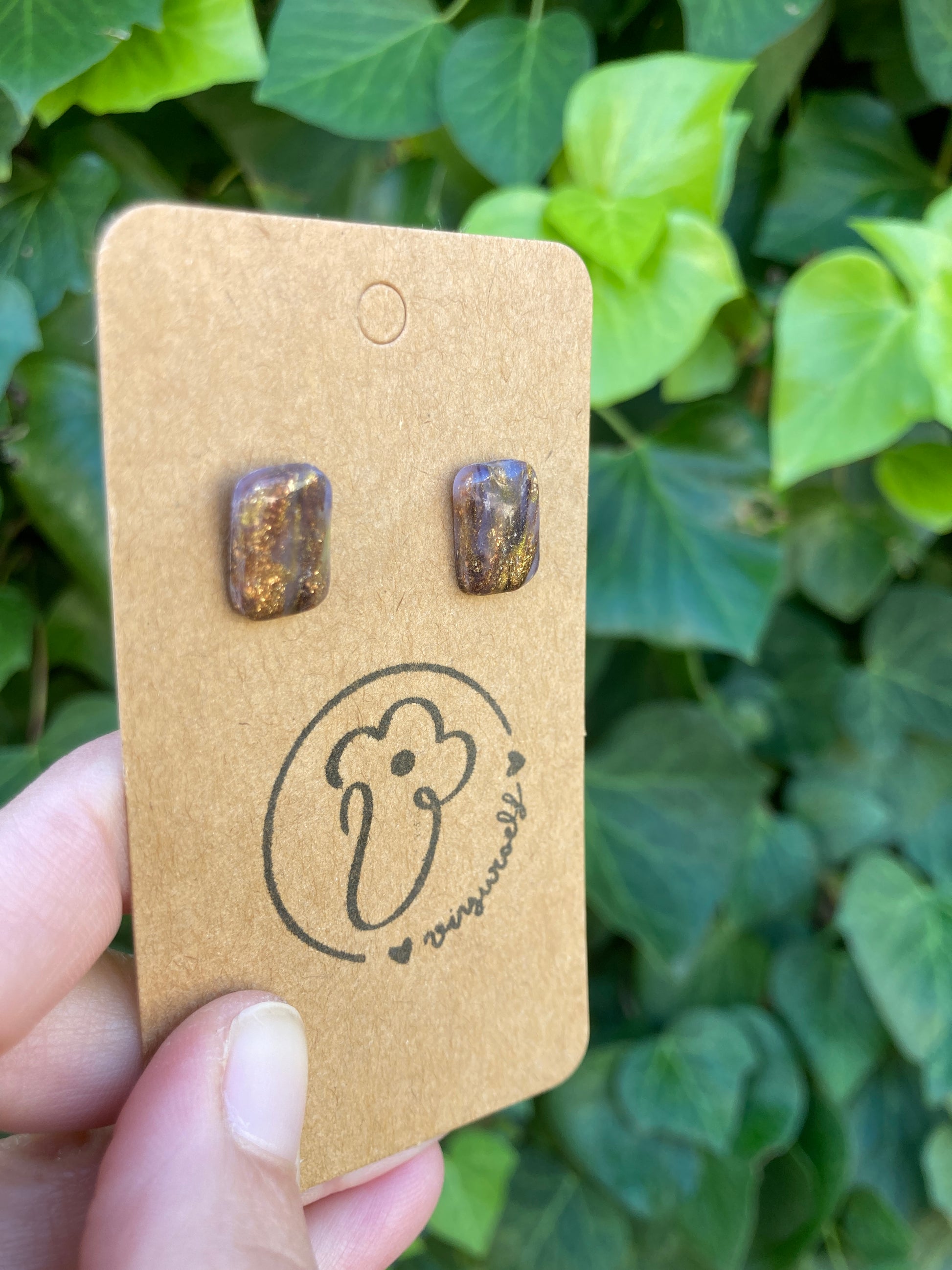 Piezas rectangulares mini efecto cuarzo marrón con partes translúcidas y toques brillantes de dorado y cobre. Acabado brillante.